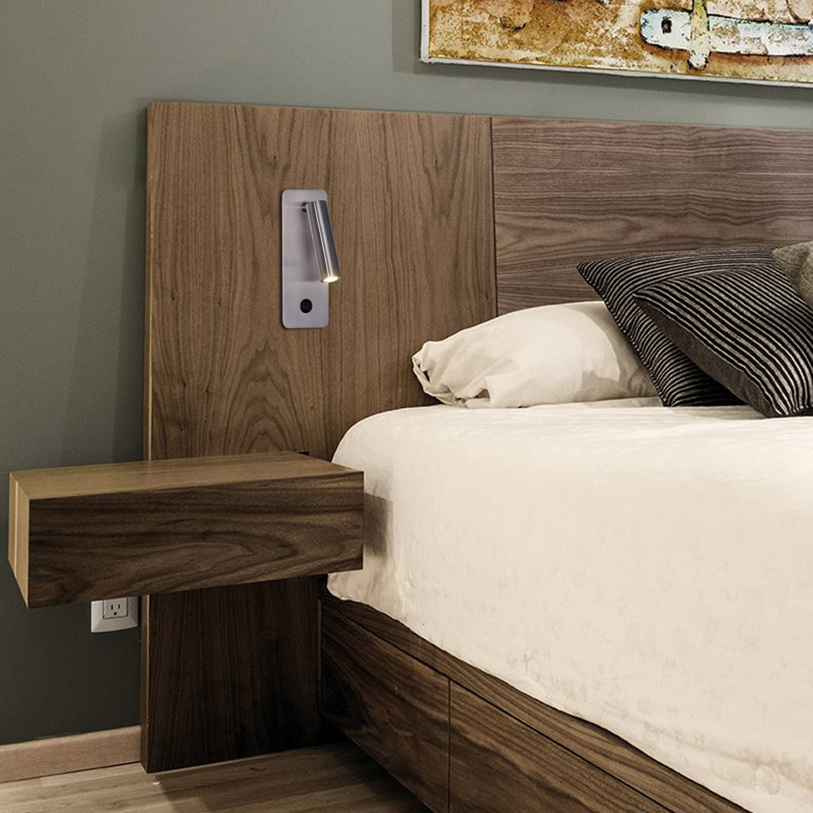 ARON RECESSED sienas gaismeklis no ACB Lighting ir ideāls risinājums, lai radītu siltu, komfortablu apgaismojumu un pievienoto vērtību jebkurā interjerā — īpaši guļamistabā, lasāmistabā vai pie gultas.