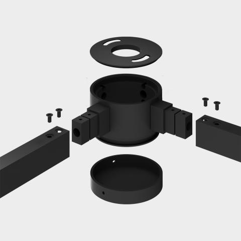 EASY LINK L CONNECTOR no ACB lighting ir 90° modulārās sistēmas savienojums. Pie tā iespējams stiprināt PIPE, LUX un citu sēriju gaismekļus.
