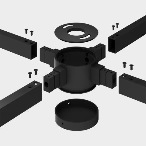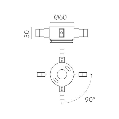 EASY LINK X CONNECTOR no ACB lighting ir X formas grādu modulārās sistēmas savienojums. Pie tā iespējams stiprināt PIPE, LUX un citu sēriju gaismekļus.