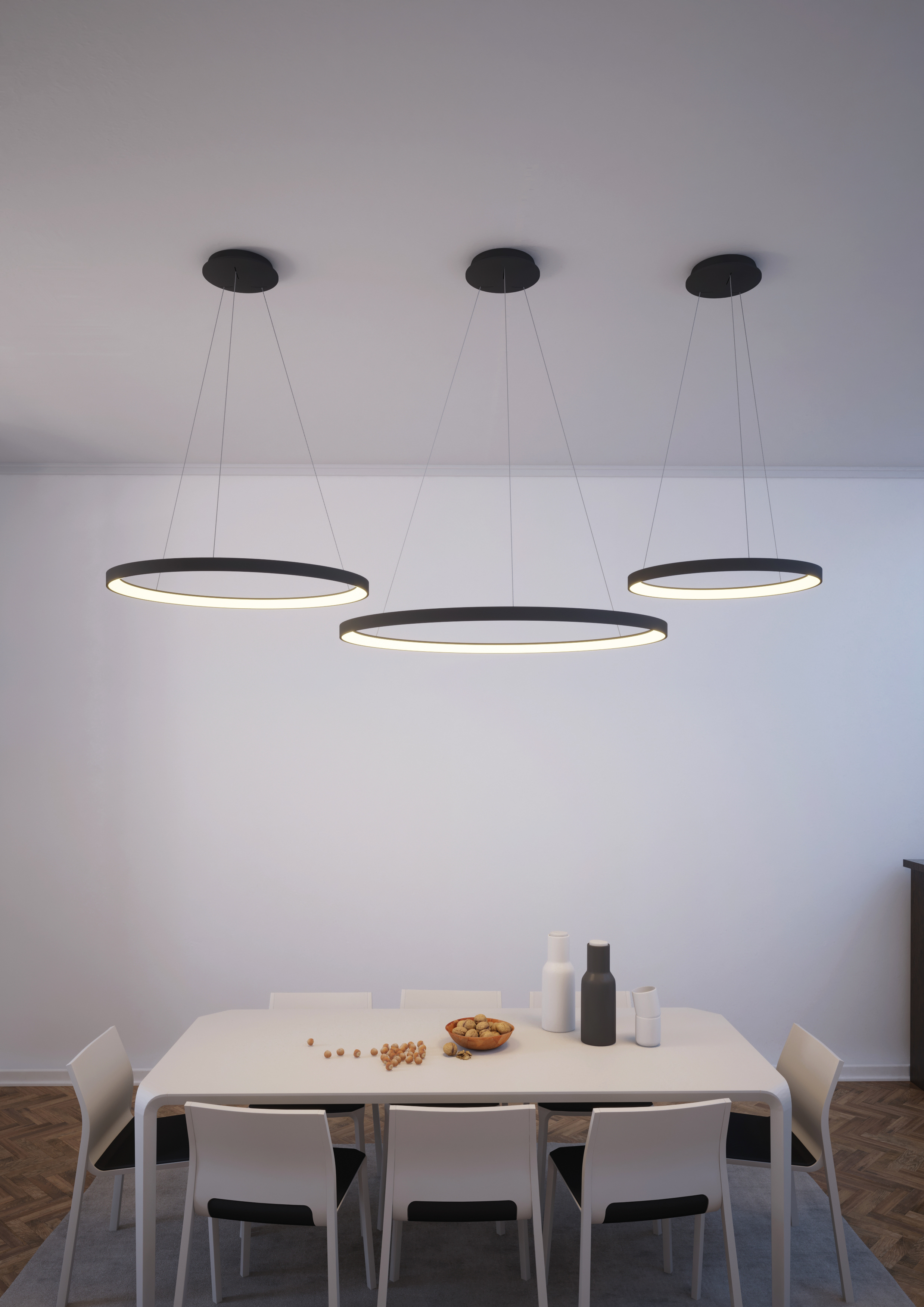 3 varianti: 20W / 30W / 40W, 1400lm / 2100lm / 2800lm, IP20