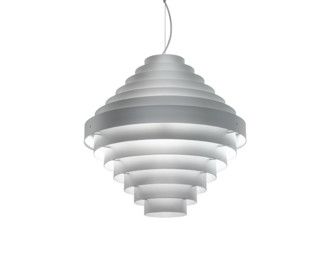 J.J.W. 05 SILVER - Iekarināms  gaismeklis no Wever & Ducre. J.J.W gaismekļu sēriju ir izveidojis interjera dizainers un arhitekts Jules Wabbes 1960'ajos gados. Forma ir vienkārša, bet tajā pat laikā sarežģīta - daudzu pakāpienu, plānu alumīnija lokšņu skulptūra, kuras centrs ir platāks, bet pakāpeniski tās sašaurinās, radot blīvu kompleksu kupolu gaismas spēlei caur lokšņu starpām, kā arī izgaismojot virsmu uz augšu un uz leju.