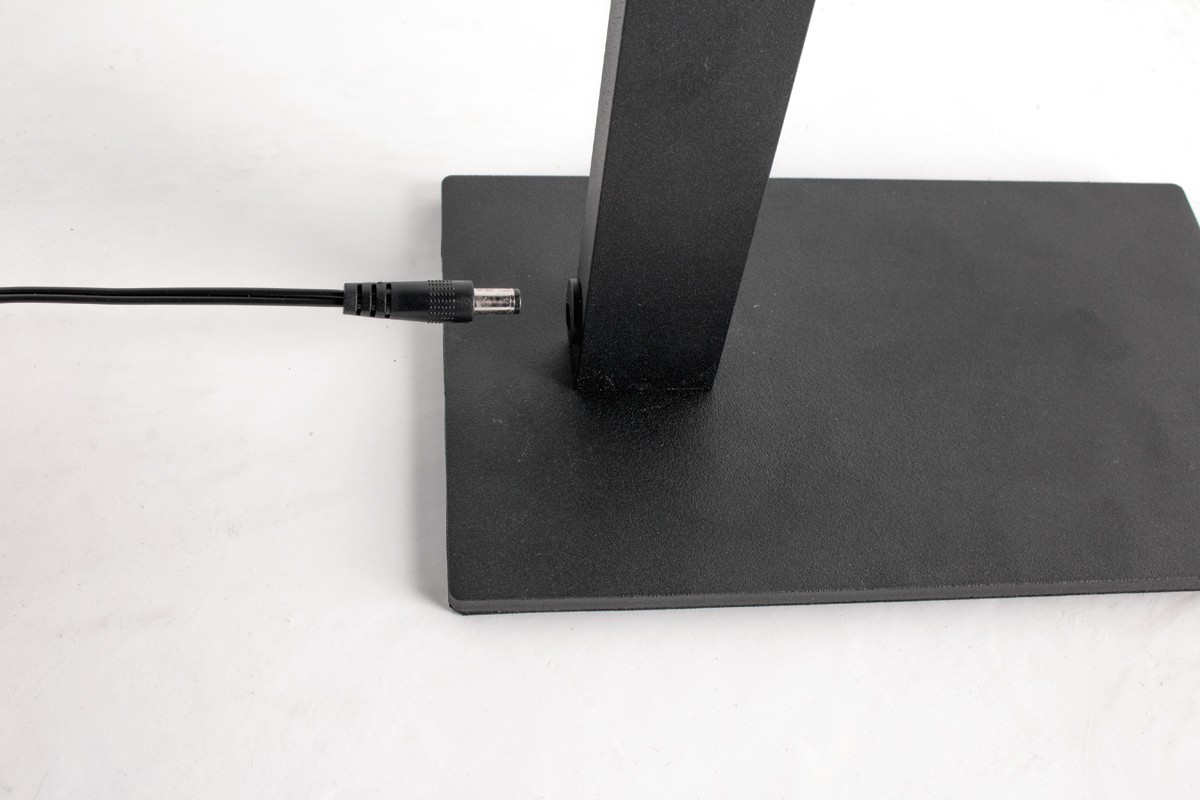 LIN sērijas galda lampas versija no VK lighting ar vienu gaismas avotu, kas savēršams vajadzīgājā virzienā.