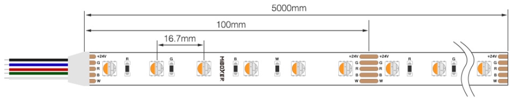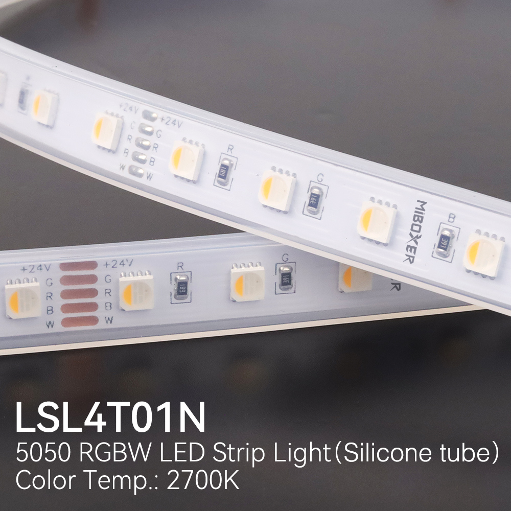 Pieejamie LED lentas veidi:LSL4T01N 4W/m RGB + 5W/m WW (2700K) 380lmLSL4T02N 4W/m RGB + 5W/m CW (6500K) 410lm