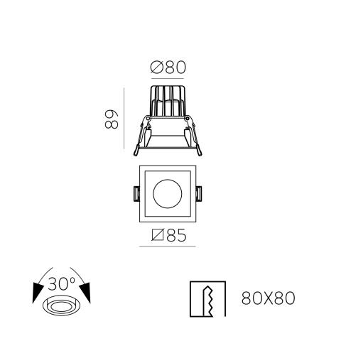 MOVE SQUARE 8 no ACB Lighthing ir moderns iebūvējams griestu gaismeklis, kas piedāvā augstas kvalitātes apgaismojumu ar elegantu minimālistisku dizainu — ideāls risinājums dzīvojamām telpām, gaiteņiem, vannas istabām vai komerctelpām.