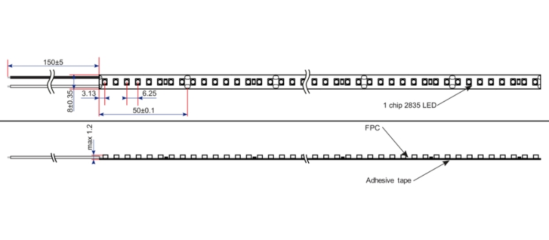 25W/m, 2700K, 2996lm, 122lm/W, RA90LED segmenta garums: 5cm (griešanai piemērota vieta)IP20 reitings (iekštelpām), 3M līmjosla