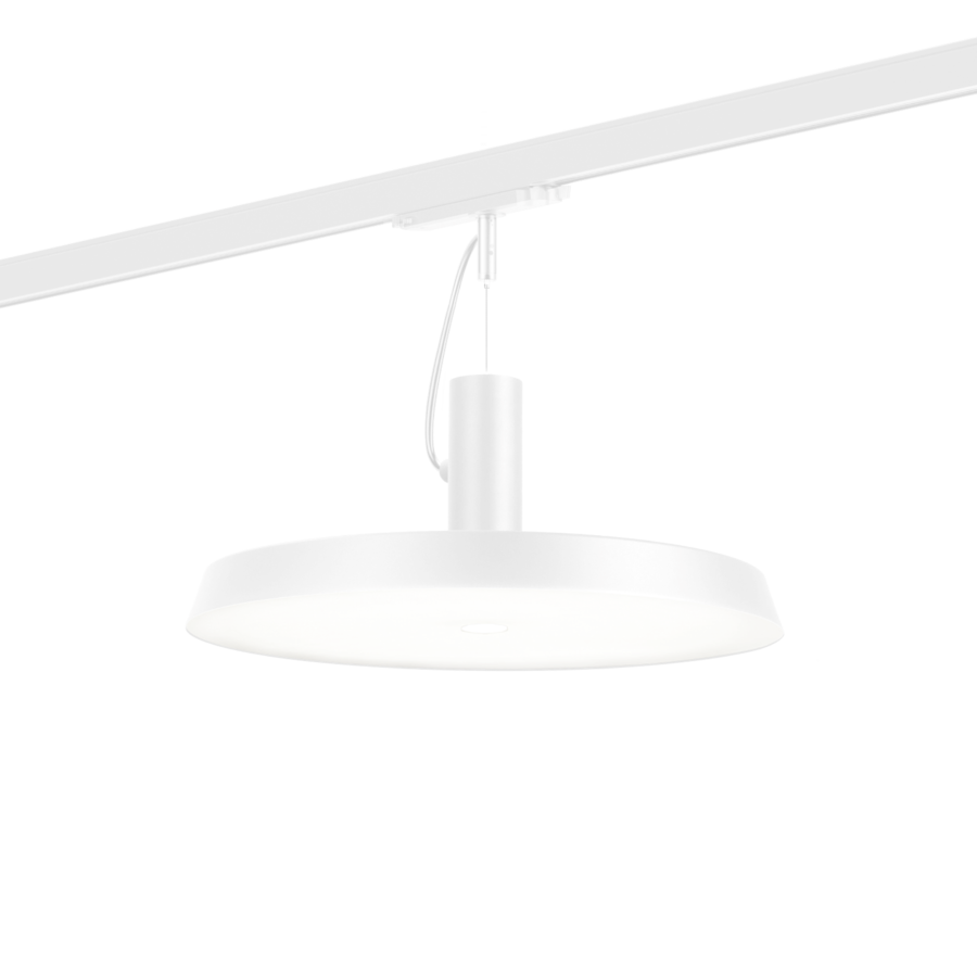ROOMOR OFFICE on track 1.0 MICROPRISMATIC WHITE MATT ir 3 fāžu sliežu sistēmām paredzēts gaismeklis ar mikroprizmatisku stiklu no Wever & Ducre.