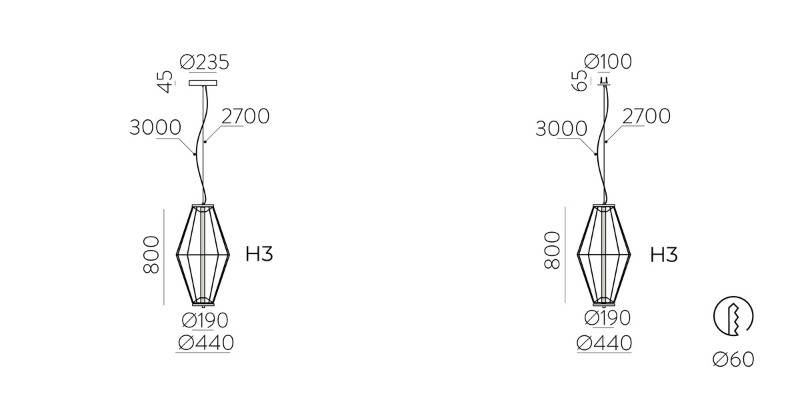 Totem Pendant H3 ir ACB lighting veltījums āzijā sastopamajām lielajām lampām un totēma stabiem. Totem sērija pieejamaa ar iebūvējamu un virsapmetuma griestu nosegu.