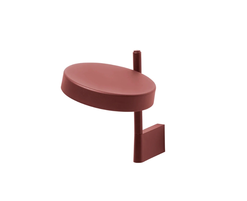 w182 Pastille br1 - wall bracket short - OXIDE RED sienas lampa no WASTBERG. Gaismas disks ar ģeometrisku pieeju, inovatīvajiem materiāliem un izsmalcināto mehāniku, w182 Pastille piedāvā ne tikai augstas klases  veiktspēju, bet arī jaunu veidu, kā mijiedarbojas gaisma mums apkārt. Plūstoši rotējot gaismas disku uz augšu, uz leju un ap savu asi, w182 Pastille brīvi veido izgaismotu virsmu, radot maigu, izkliedētu gaismu, bet ar maigu, bet skaidru izšķirtspēju. Katra detaļa ir rūpīgi pārdomāta un izstrādāta ar lielu precizitāti – sākot ar metāla detaļām, kuras metinātas ar īpašu ultraskaņas tehnoloģiju līdz pat dimmēšanas pogai vertikālā stieņa augšpusē. w182 Pastille sērijas gaismekļus ir radījuši industriālie dizaineri Sam Hecht and Kim Colin.