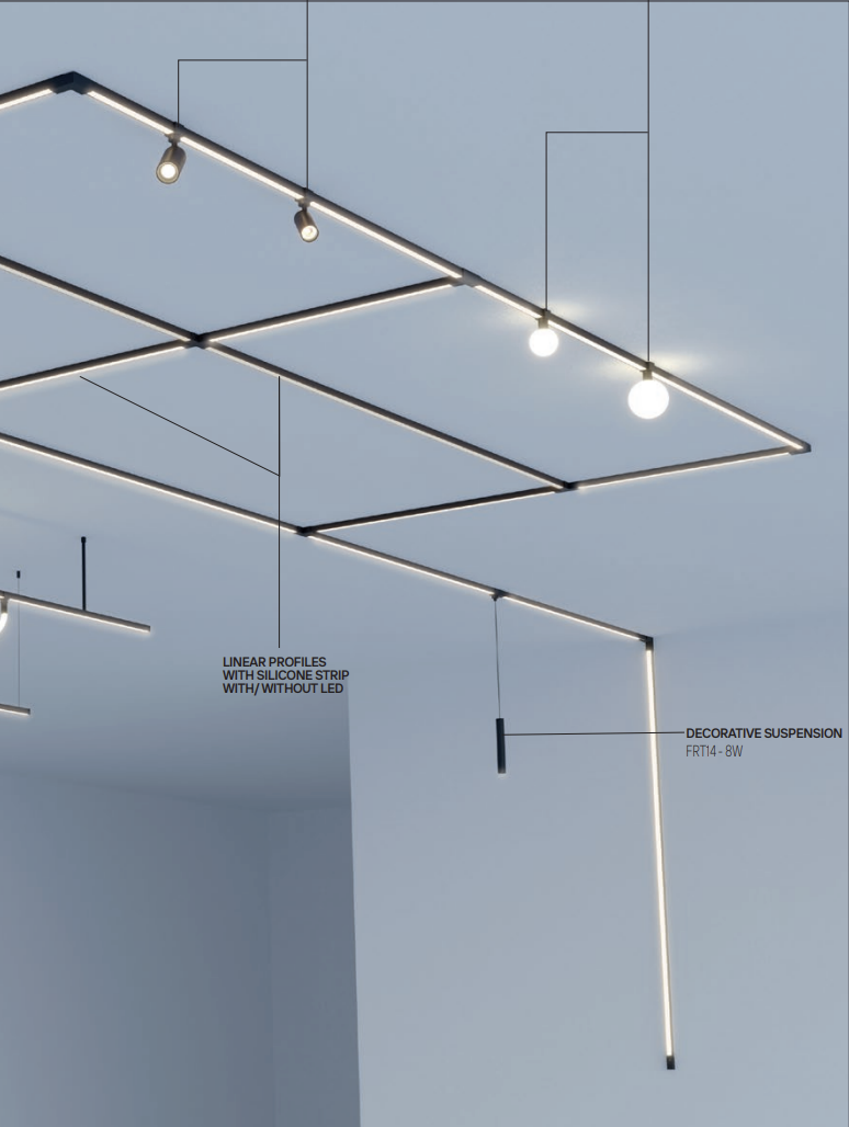 XFORT SYSTEM SUSPENSION PIPES - Tērauda caurules XFORT sistēmas profiliem, aprīkotas ar griestu un profilu stiprinājumiem, elektrostatiski krāsotas.